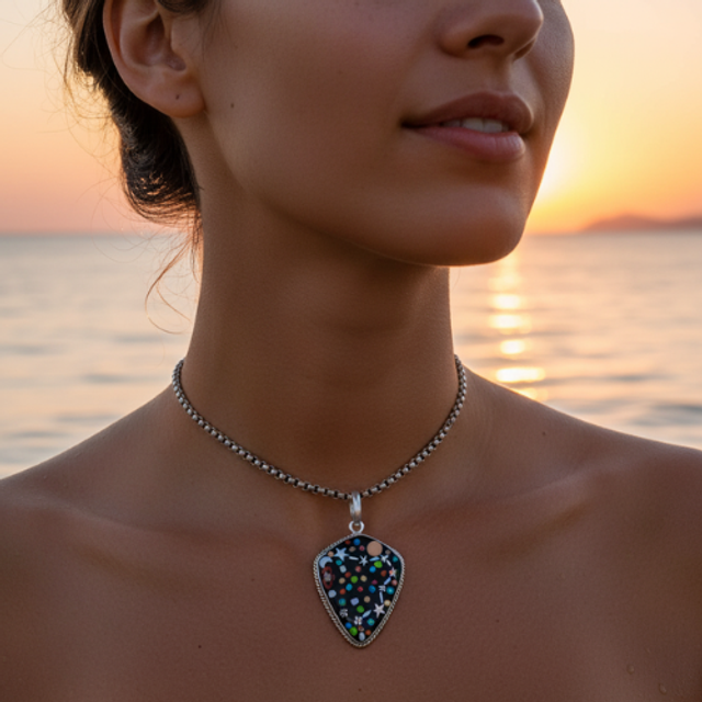 Inspiré par la fluidité des eaux et la poésie des songes, la Constellation des Poissons est plus qu´un bijou, c´est un talisman énergétique délicatement incrusté de pierres fines. Conçu pour les hypersensibles, les créatifs et les rêveurs, il éveille votre intuition, nourrit votre compassion et vous invite à suivre les inspirations du cœur.